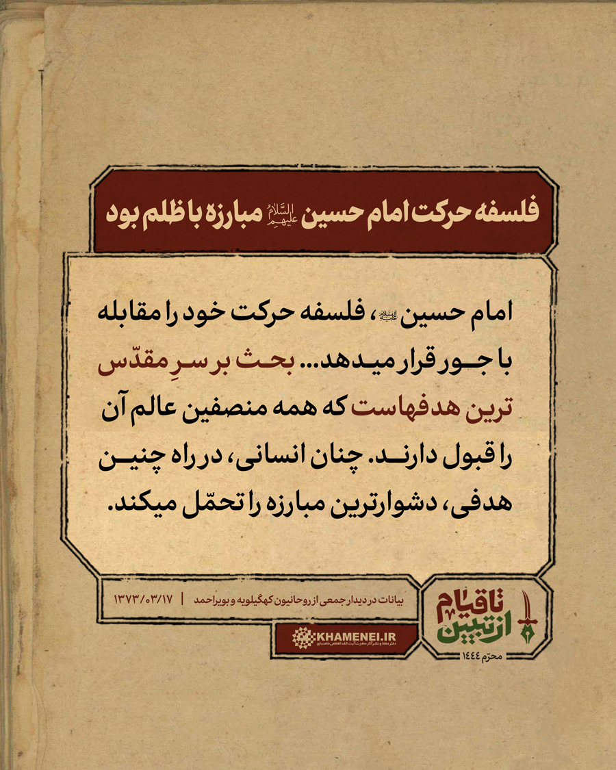 منبع:پايگاه اطلاعرسانی دفتر حفظ و نشر آثار حضرت آيتاللهالعظمی سيدعلی خامنهای (مدظلهالعالی) موضوعات مرتبط: مناسبات مذهبی، حسینی، هیئتی برچسبها: محرم, محرم الحرام [ پنجشنبه پنجم تیر ۱۴۰۴ ] [ 19:58 ] [ انصار صاحب الزمان(عج) ]