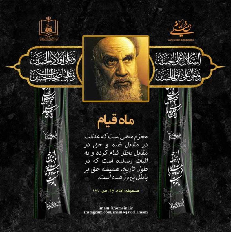 محرّم ماهی است که عدالت در مقابل ظلم و حق در مقابل باطل قیام کرده و به اثبات رسانده است که در طول تاریخ، همیشه حق بر باطل پیروز شده است. منبع:صحیفه امام جلد ۵ ص ۱۷۷ پرتال امام خمینی(ره) موضوعات مرتبط: مناسبات مذهبی، حسینی، هیئتی برچسبها: محرم, محرم الحرام, عزاداری, ورود به محرم [ چهارشنبه بیست و هشتم تیر ۱۴۰۲ ] [ 21:49 ] [ انصار صاحب الزمان(عج) ]